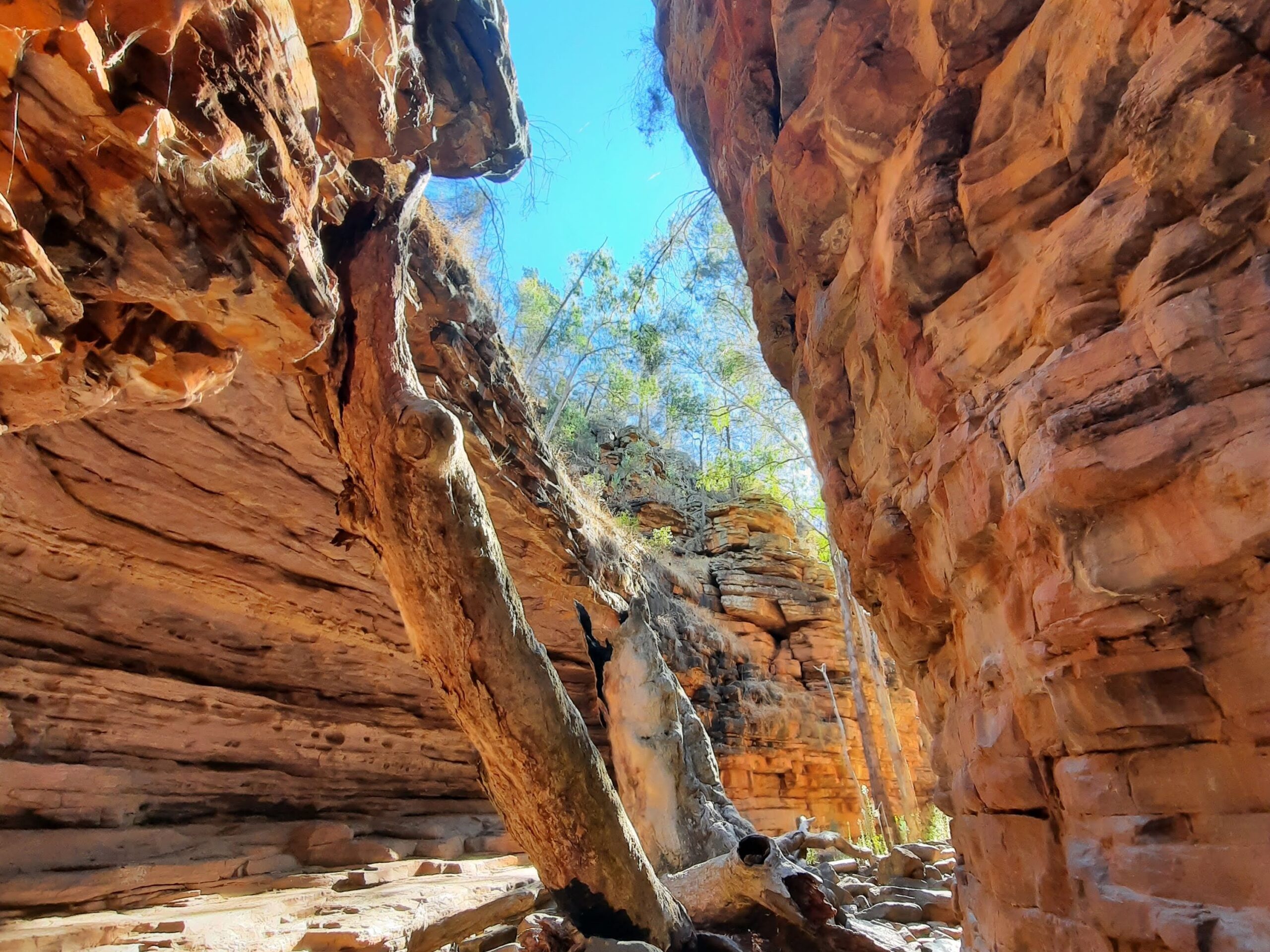 In some places on the trail, sheer cliffs rise almost straight up from the creekbed, providing a spectacular backdrop. The two spring-fed creeks keep the first pool filled with water all year round. The second pool is low in summer, but after big rains it can fill up to 3 metres. At these times, the cool green waters stretch about 20-30 metres across.