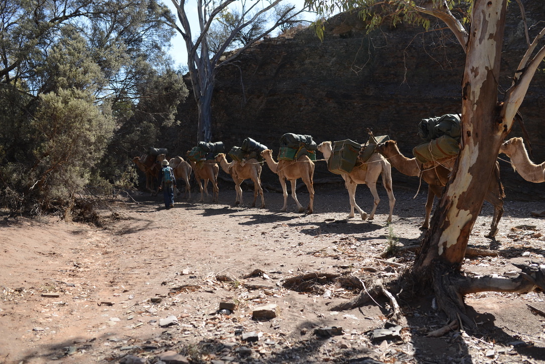This morning we embark on the beginning of our journey into the northern Flinders wilderness with our camel train leading the way.