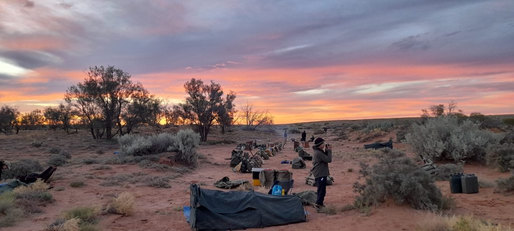 Each morning begins with waking in our swags to the sounds of morning bird song, followed by billy tea or coffee on the fire and breakfast and lunch making. Once we have packed up camp and loaded the camels, we set off on our next adventure.