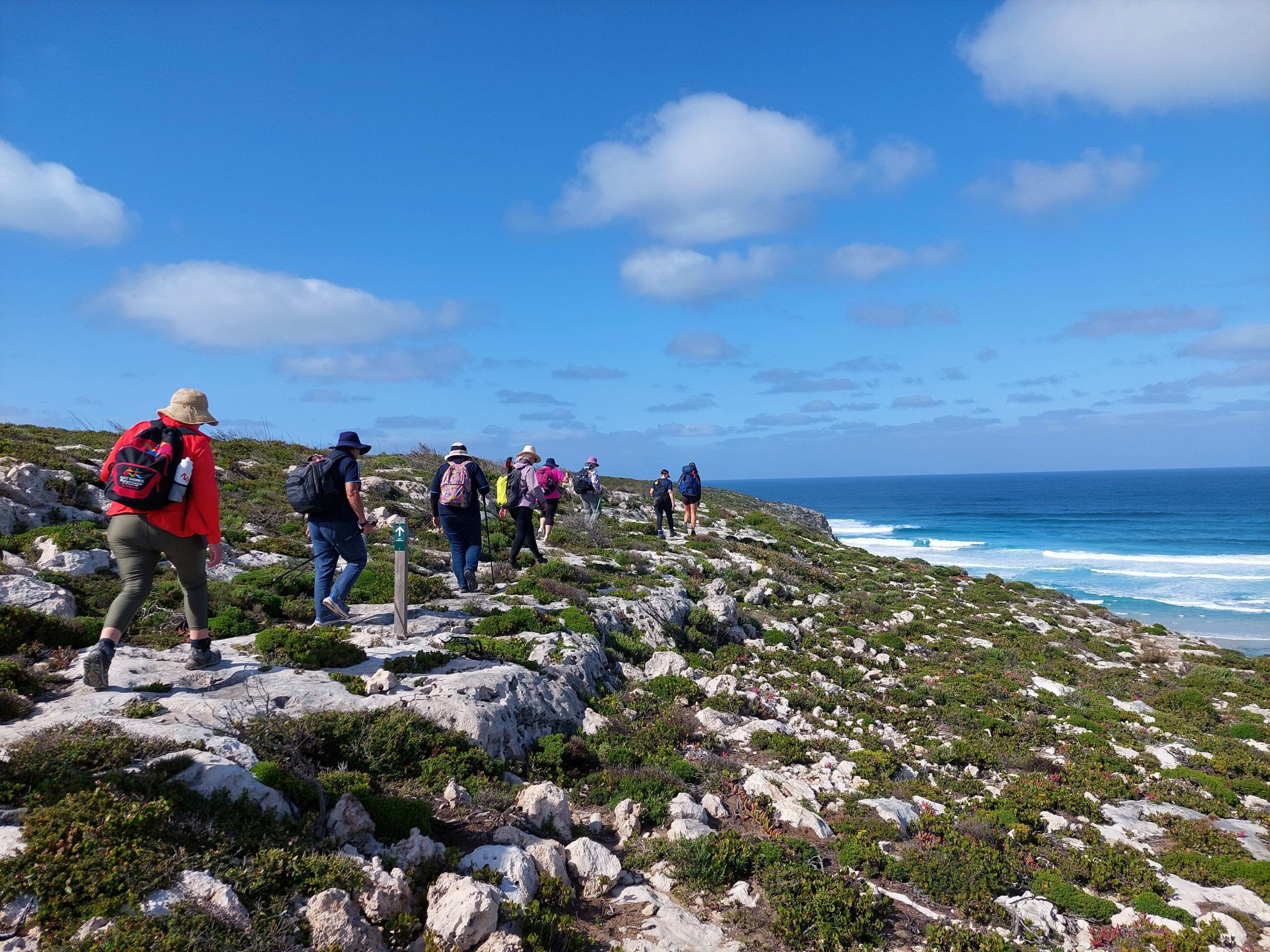 Mid-morning we begin our first walk, the Ironstone Hill Hike in the Baudin Conservation Park. This walk follows the historic Bullock Track towards Cape Willoughby and leads to Ironstone Hill, overlooking a magnificent coastal vista and revealing some of the area’s farming heritage.
