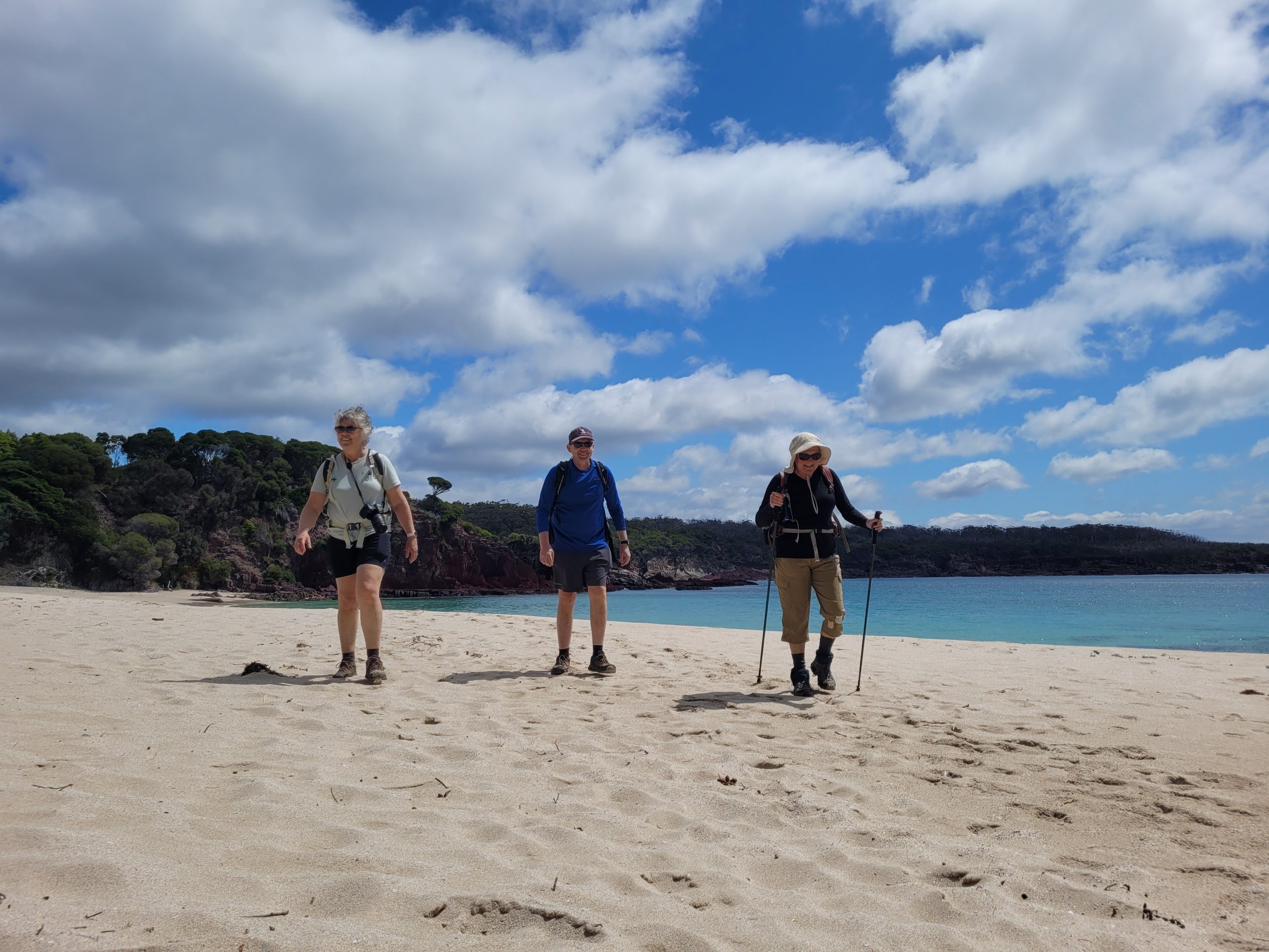You’ll experience a beautiful mixture of coastal cliff edges and inland trails in the shade and away from coastal winds. A short side trip takes you to Sanderson Bay where in the right conditions, swimming is possible.