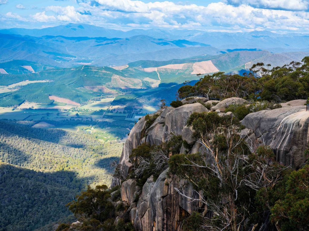 Starting from the picturesque Mackeys lookout at 927m above sea level, we meander our way through rocky outcrops and past spectacular views of the Kiewa Valley and surrounding alpine landscape. Mackeys lookout provides the perfect spot to take in the beauty of Mount Beauty and the Victorian Alps.